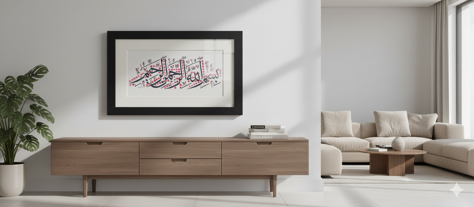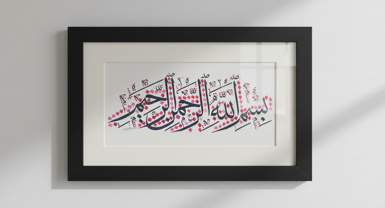 The Basmala or Basmalah (Arabic: بَسْمَلَة, romanized: basmalah; also known as Tasmiya by its opening words Bi-‘sm-illāh; بِسْمِ ٱللهِ, “In the name of God”) is an Islamic phrase meaning “In the name of God, the Most Gracious, the Most Merciful” (Arabic: بِسْمِ ٱللهِ ٱلرَّحْمَٰنِ ٱلرَّحِيْمِ, bi-smi llāhi r-raḥmāni r-raḥīm). It is one of the most important phrases in Islam and is frequently recited by Muslims before performing daily activities and religious practices, including prayer, and at the start of verses (āyah) or chapters (surahs) of the Qur’an.